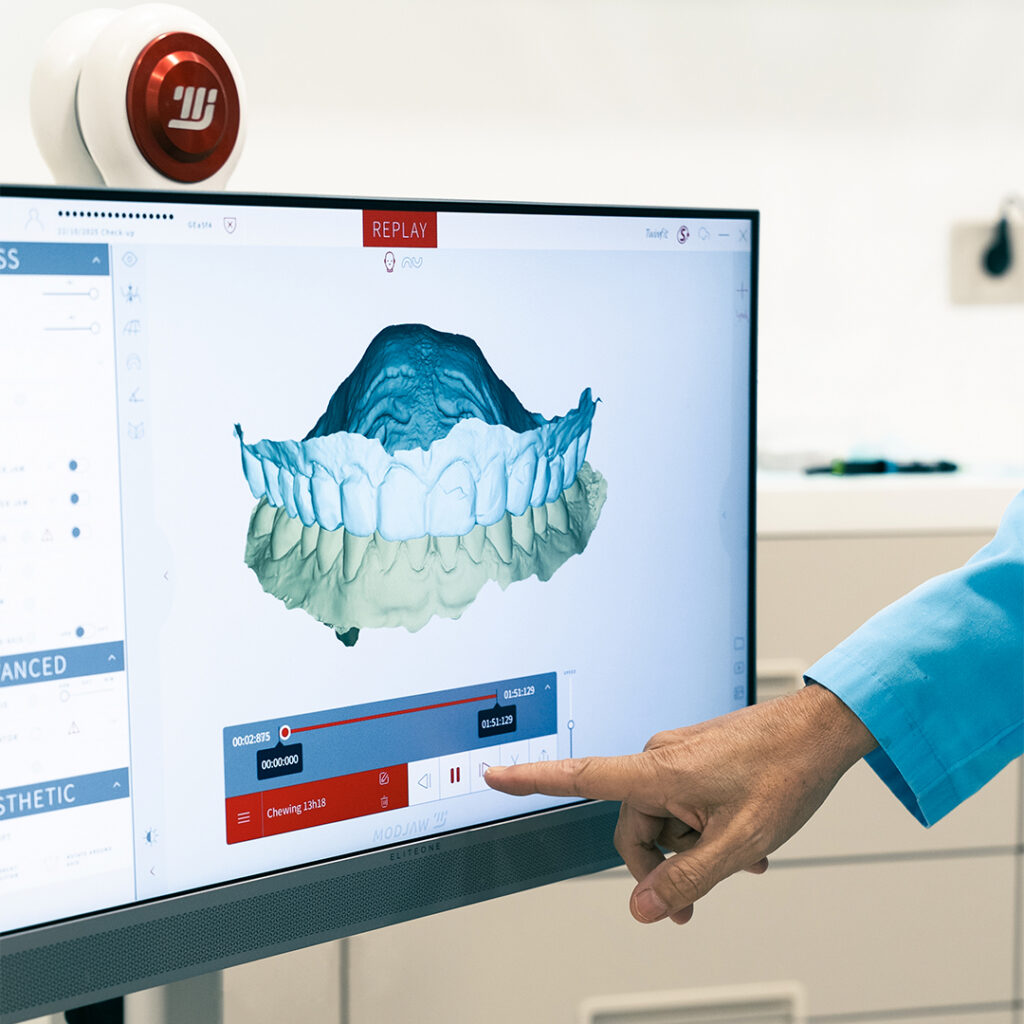 Gracias al T-Scan y Modjaw®, a la planificación digital 3D y a la experiencia clínica del Dr. Eduardo Crespo Sánchez, podemos detectar desequilibrios en segundos y corregirlos con precisión micrométrica.